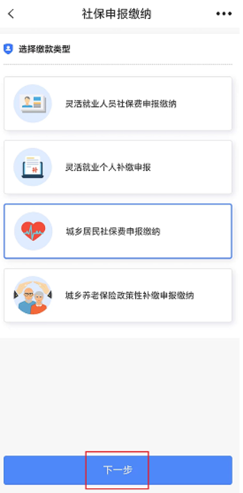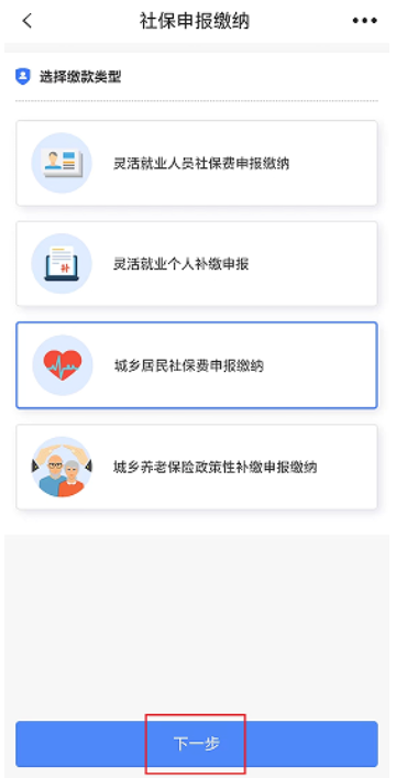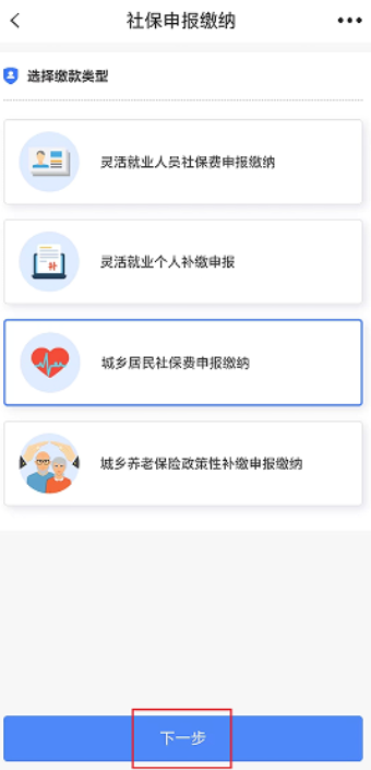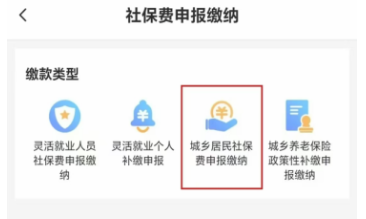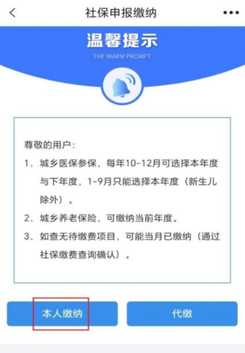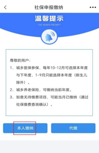 2.扫码进入到【城乡居民社保费申报缴纳】—选择【本人缴纳】—社保年度选择【2026年度】。