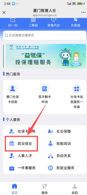 微信搜索进入【厦门智慧人社】小程序,点击就业创业。