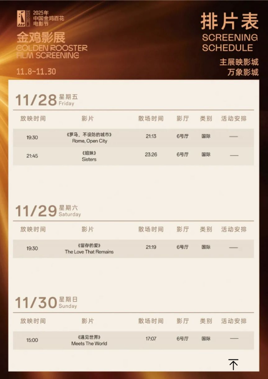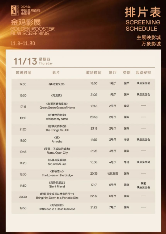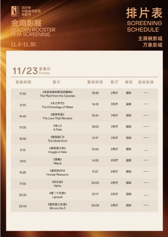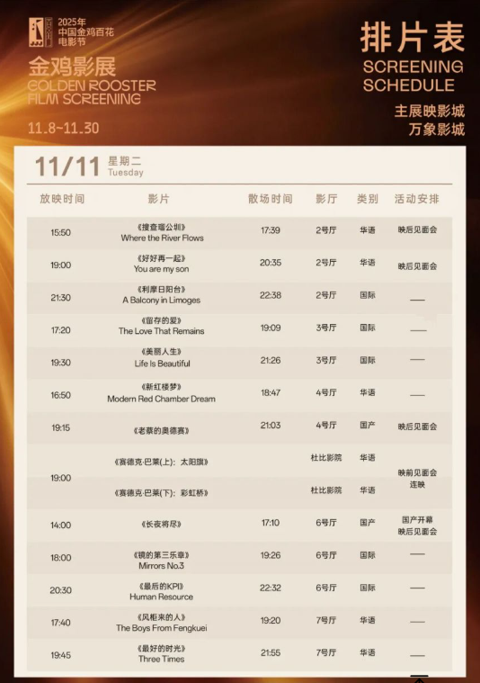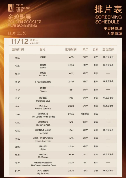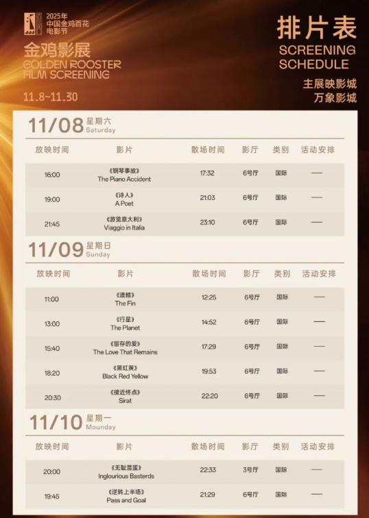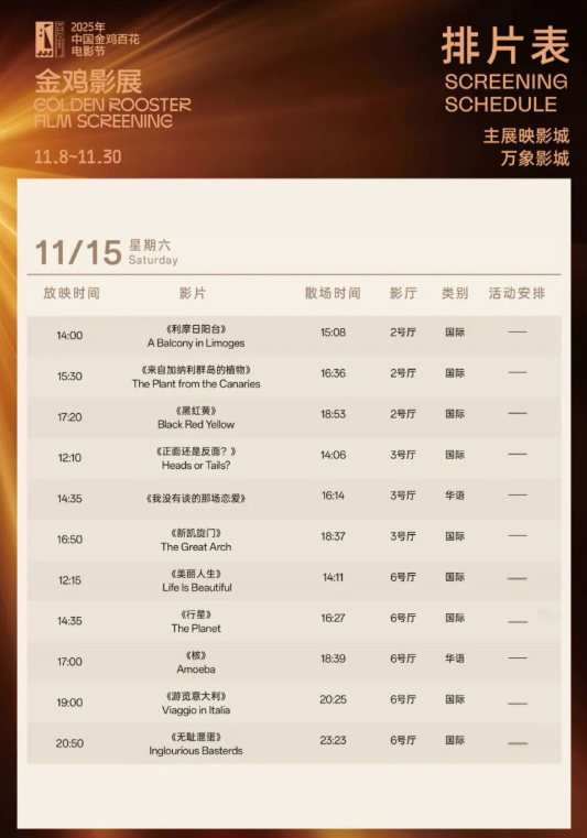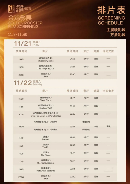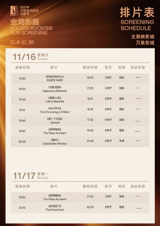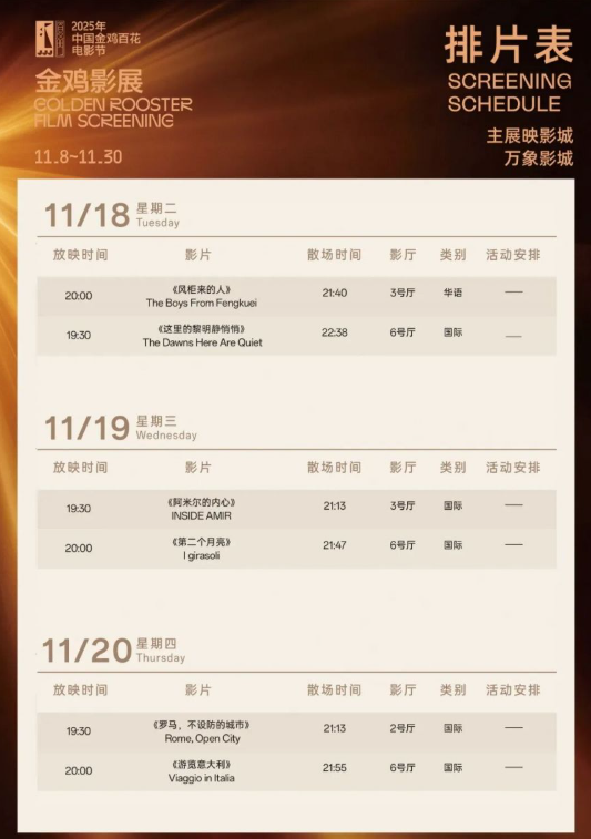 2025金鸡影展厦门万象影城影片排片表介绍