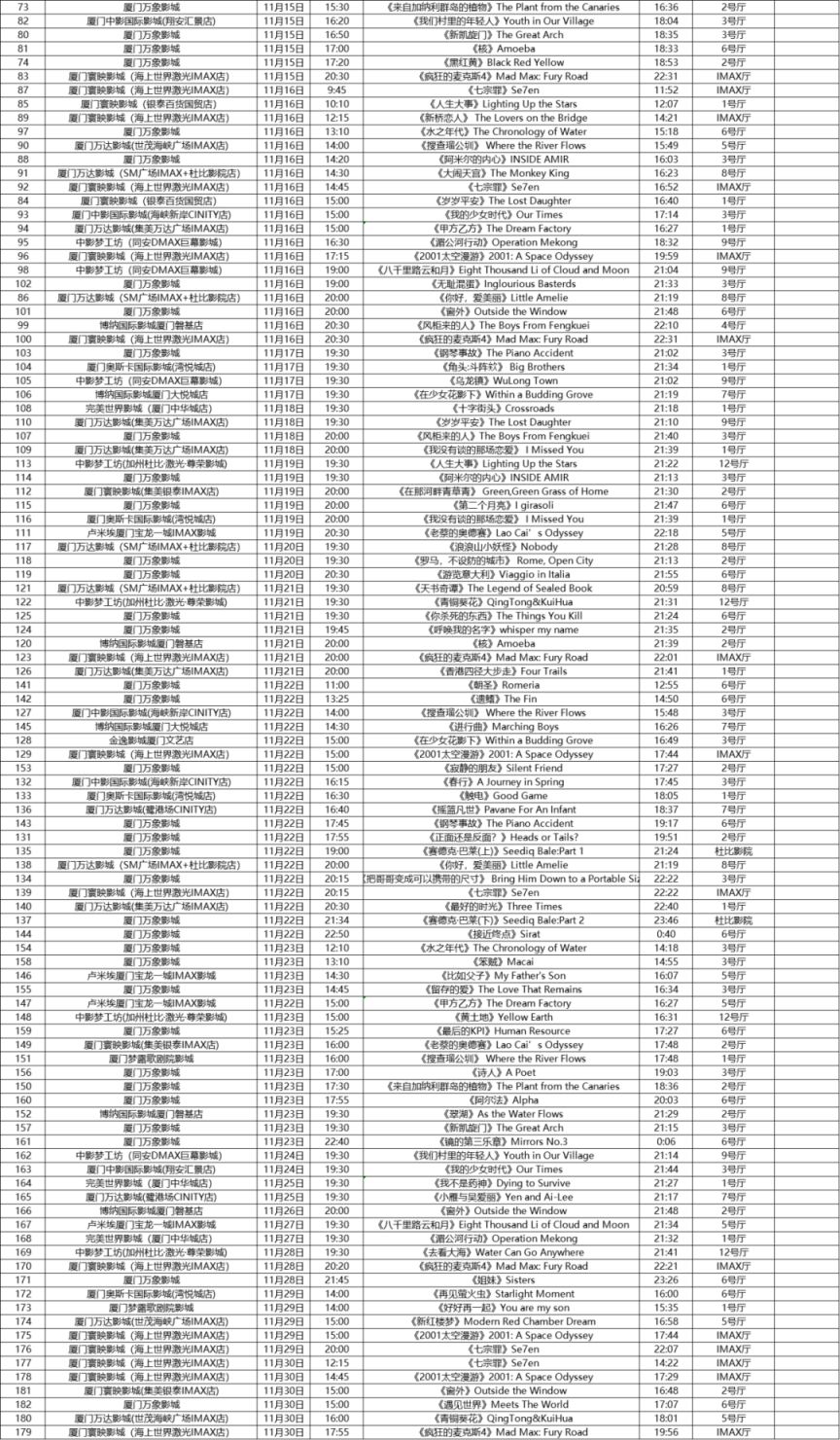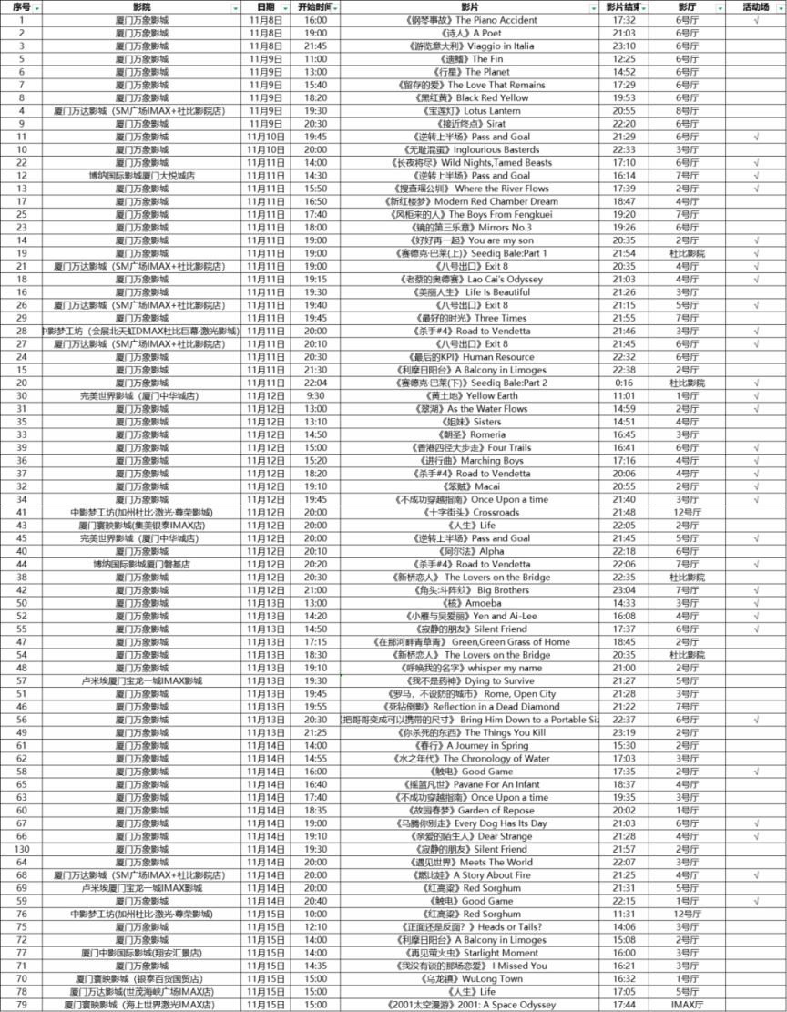 2025金鸡影展厦门万象影城影片排片表介绍(具体排期以实际为准)11.08-11......