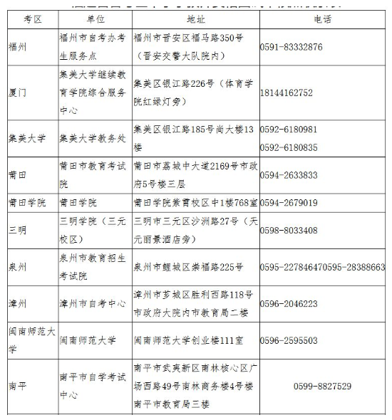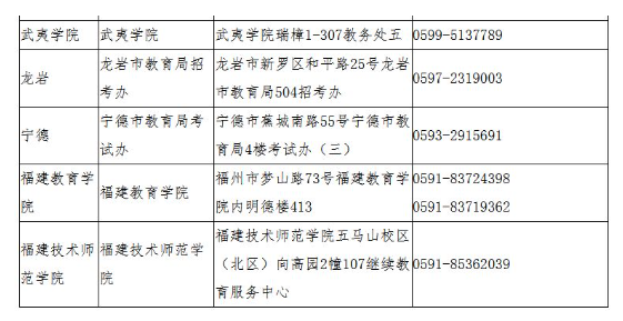 福建省各考区中小学教师资格面试审核点联系表