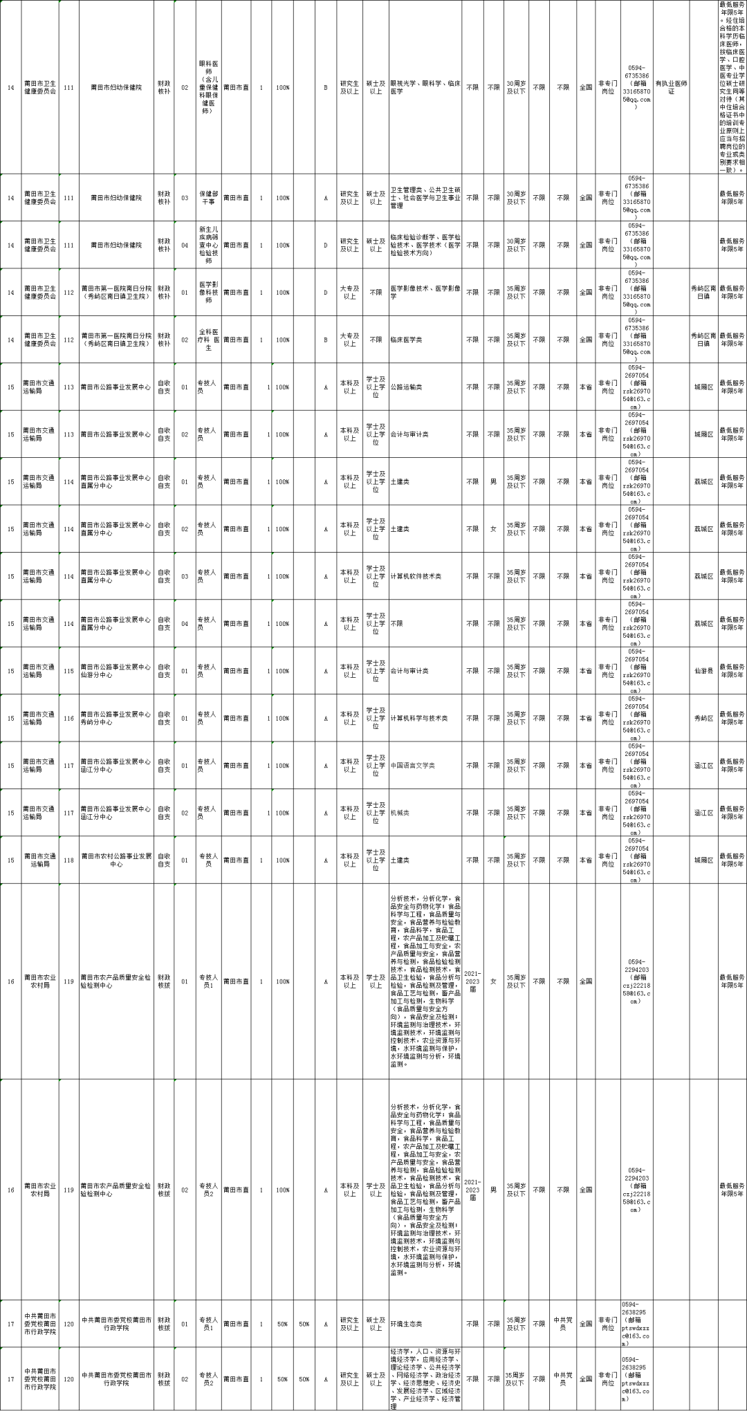 详情点击:莆田市2023年度秋季事业单位公开考试招聘工作人员公告